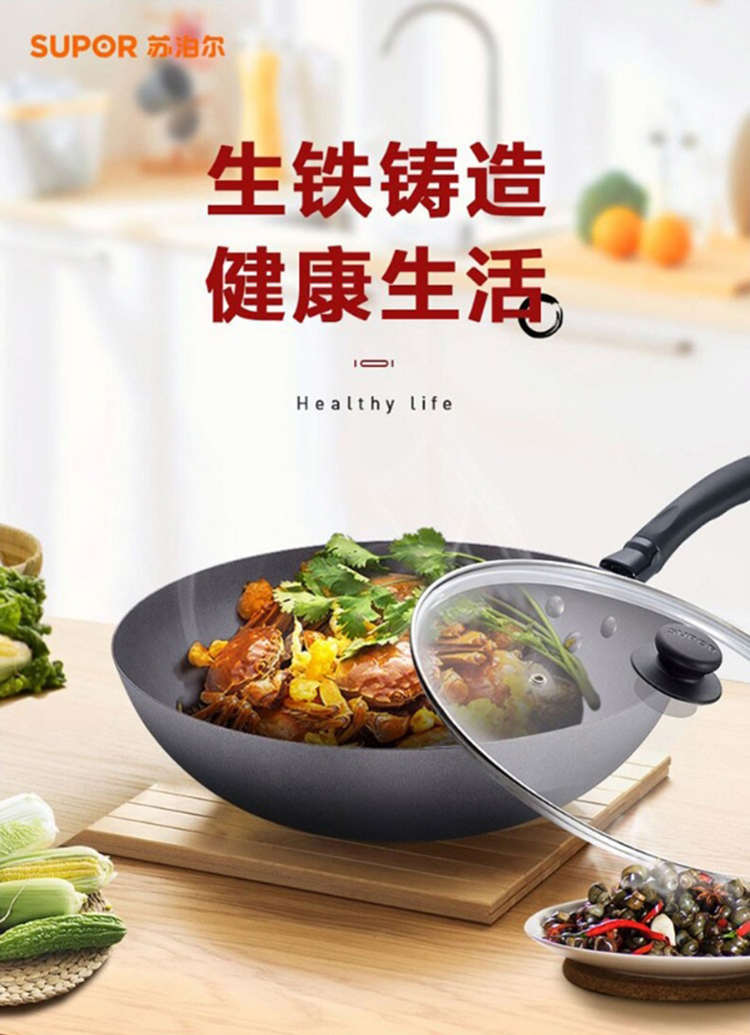 苏泊尔 精铸32cm铁锅玻璃盖 VC32JF02